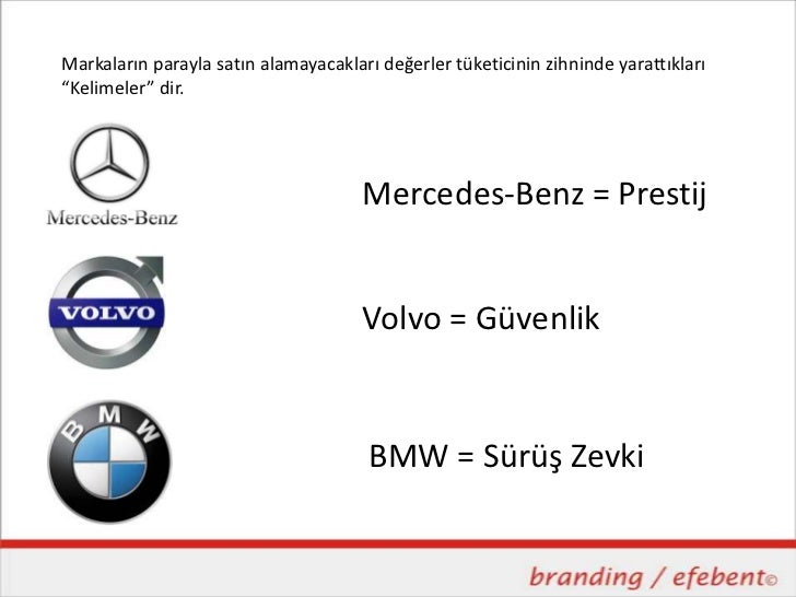 yarattıkları“Kelimeler” dir. Mercedes-Benz = Prestij Volvo = Güvenlik