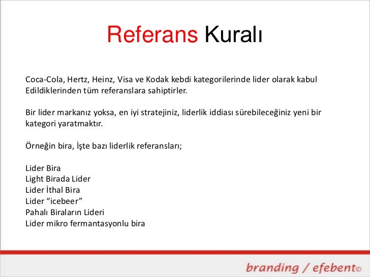 Referans KuralıCoca-Cola, Hertz, Heinz, Visa ve Kodak kebdi