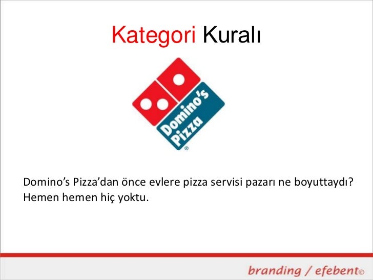 Kategori KuralıDomino’s Pizza’dan önce evlere pizza servisi pazarı ne boyuttaydı?Hemen hemen hiç yoktu.