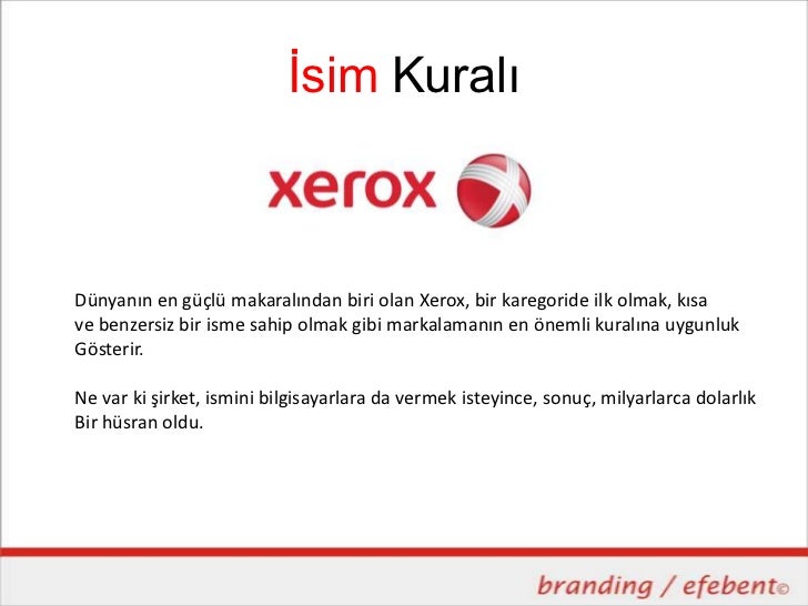 İsim KuralıDünyanın en güçlü makaralından biri olan Xerox, bir