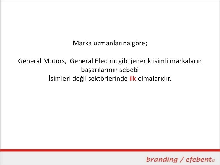 Marka uzmanlarına göre;General Motors, General Electric gibi jenerik