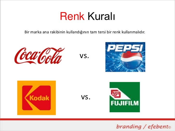 Renk KuralıBir marka ana rakibinin kullandığının tam tersi bir renk kullanmalıdır. vs. vs.