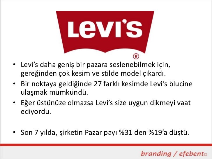 • Levi’s daha geniş bir pazara seslenebilmek için, gereğinden çok kesim