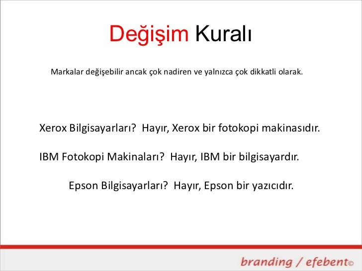 Değişim Kuralı Markalar değişebilir ancak çok nadiren ve yalnızca çok
