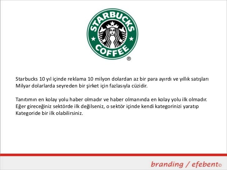 Starbucks 10 yıl içinde reklama 10 milyon dolardan az bir para ayırdı ve