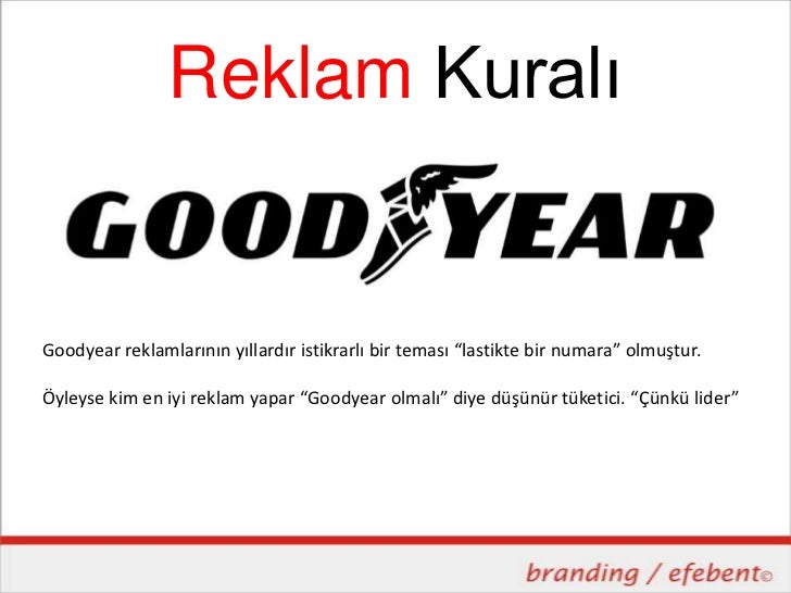 “lastikte bir numara” olmuştur.Öyleyse kim en iyi reklam yapar “Goodyear