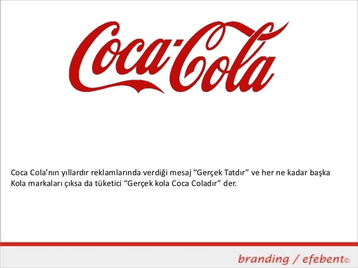 her ne kadar başkaKola markaları çıksa da tüketici “Gerçek kola Coca